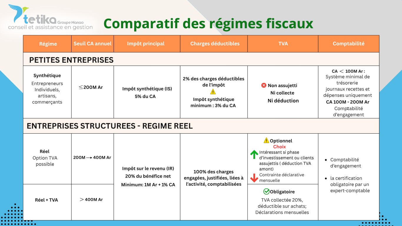 Pour plus d’informations sur le conseil et assistance en gestion, n'hésitez pas à nous contacter au 032 11 659 00 ou nous écrire à contact@tetika.eu pour un accompagnement personnalisé pour développer votre entreprise.